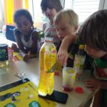 In den nächsten Tagen erkundeten wir Erbach, pflanzten Kresse und Mungobohnen in selbstgemachten Keimgläsern. Jeden Tag haben wir die Pflanzen sorgsam gepflegt und ganz gespannt zugesehen, wie schön unser Kressewald wuchs und die Mungobohnen immer größer wurden. Bei verschiedenen Experimenten haben wir spannende Reaktionen beobachtet und gelernt, wie man einen kleinen Propeller bastelt.